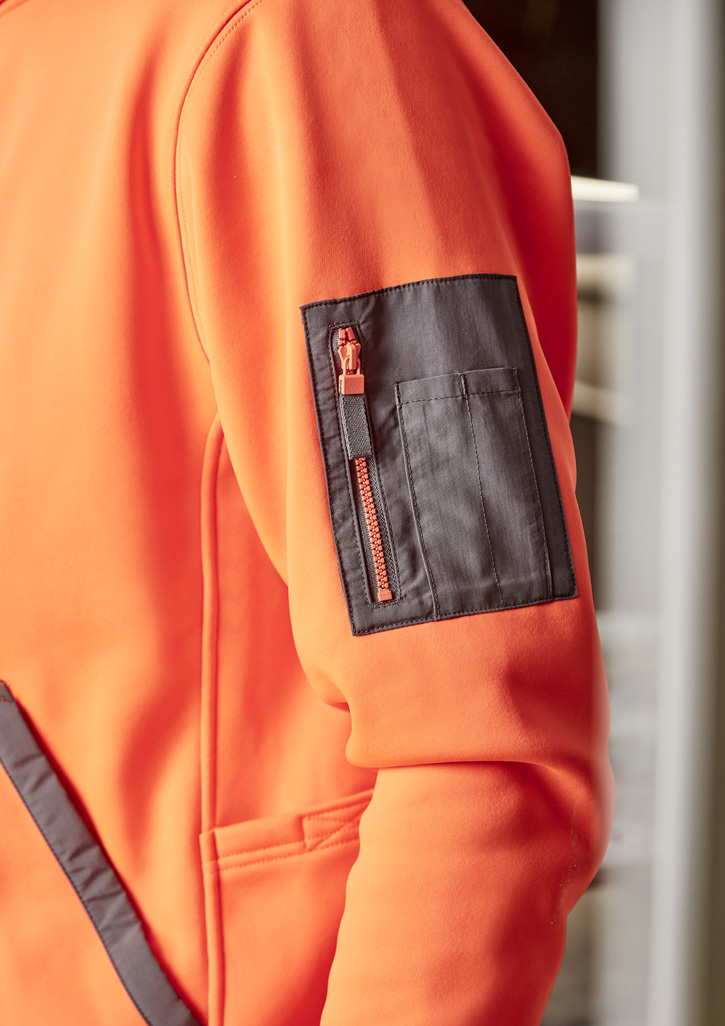 • Contrast arm pocket with zip closure